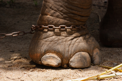 A cirkuszi elefánt azért nem szökik meg, mert egészen kicsi korától fogva egy ehhez hasonló karóhoz kötve él.